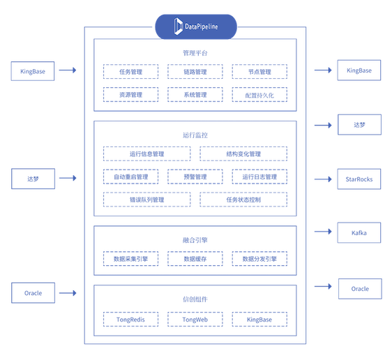 为全面解决上述技术难题,双方组建联合技术攻关团队,共同对产品架构进行了重大升级,构建了统一的实时数据融合平台,显著提升了平台对多类国产数据库的兼容与调度能力。该平台全面支持国产化技术栈,涵盖增量采集、实时传输与多源融合等核心能力,为高时效业务场景提供稳定、高效的数据支撑。尤其值得一提的是,通过联合攻关,平台实现了多项信创环境下的关键技术突破。
