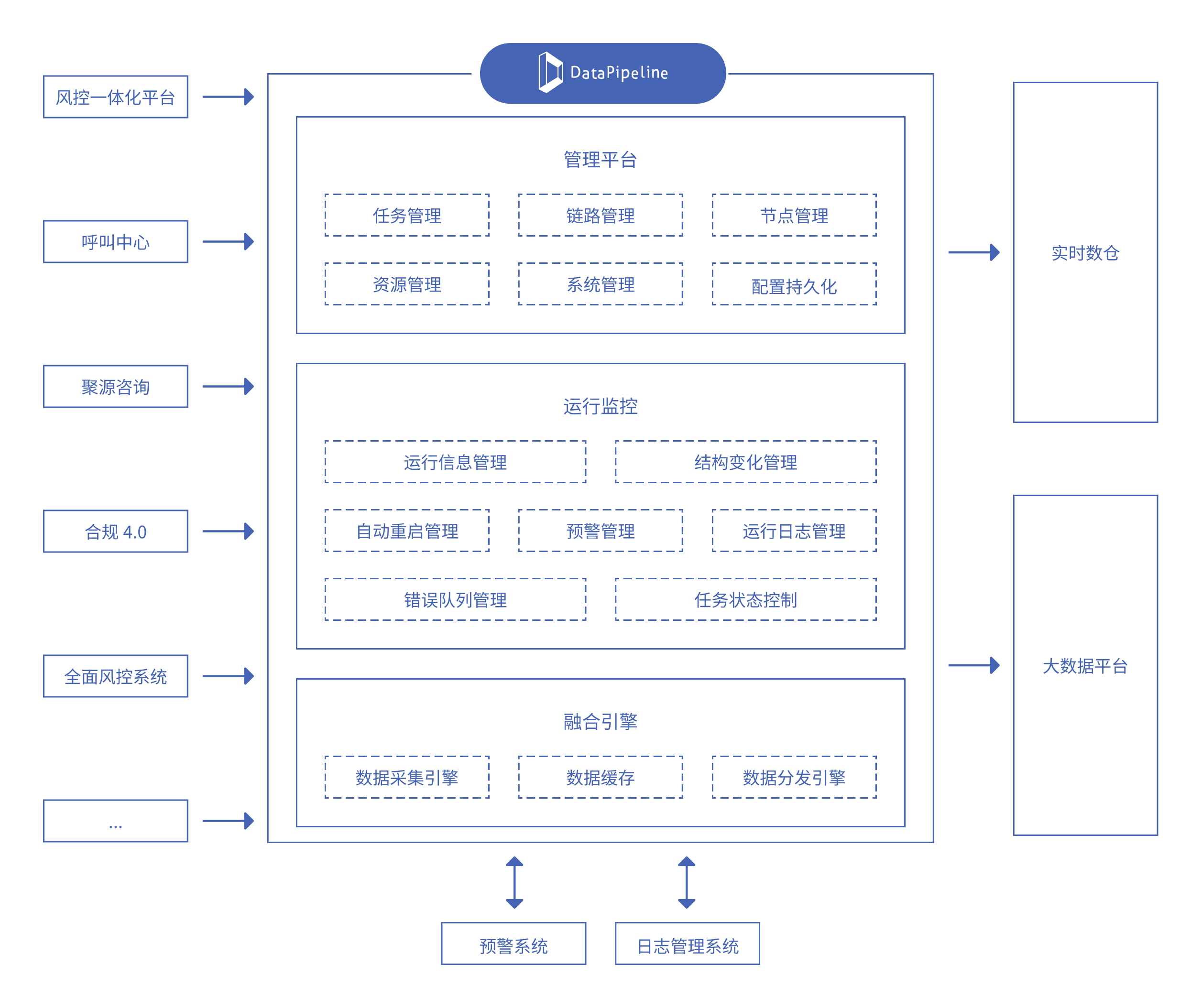 DataPipeline企业级实时数据融合平台适配了财达证券包括MySQL、SQL Server、StarRocks、Hive在内的多种数据库管理技术,实现对风控一体化平台、呼叫中心、聚源咨询、合规 4.0、全面风控系统等核心业务数据的稳定采集与实时处理。融合后的数据被高效同步至实时数仓与大数据平台,为公司各类实时指标计算、运营分析、风险监测与跨系统数据服务提供持续、可靠的数据支持。